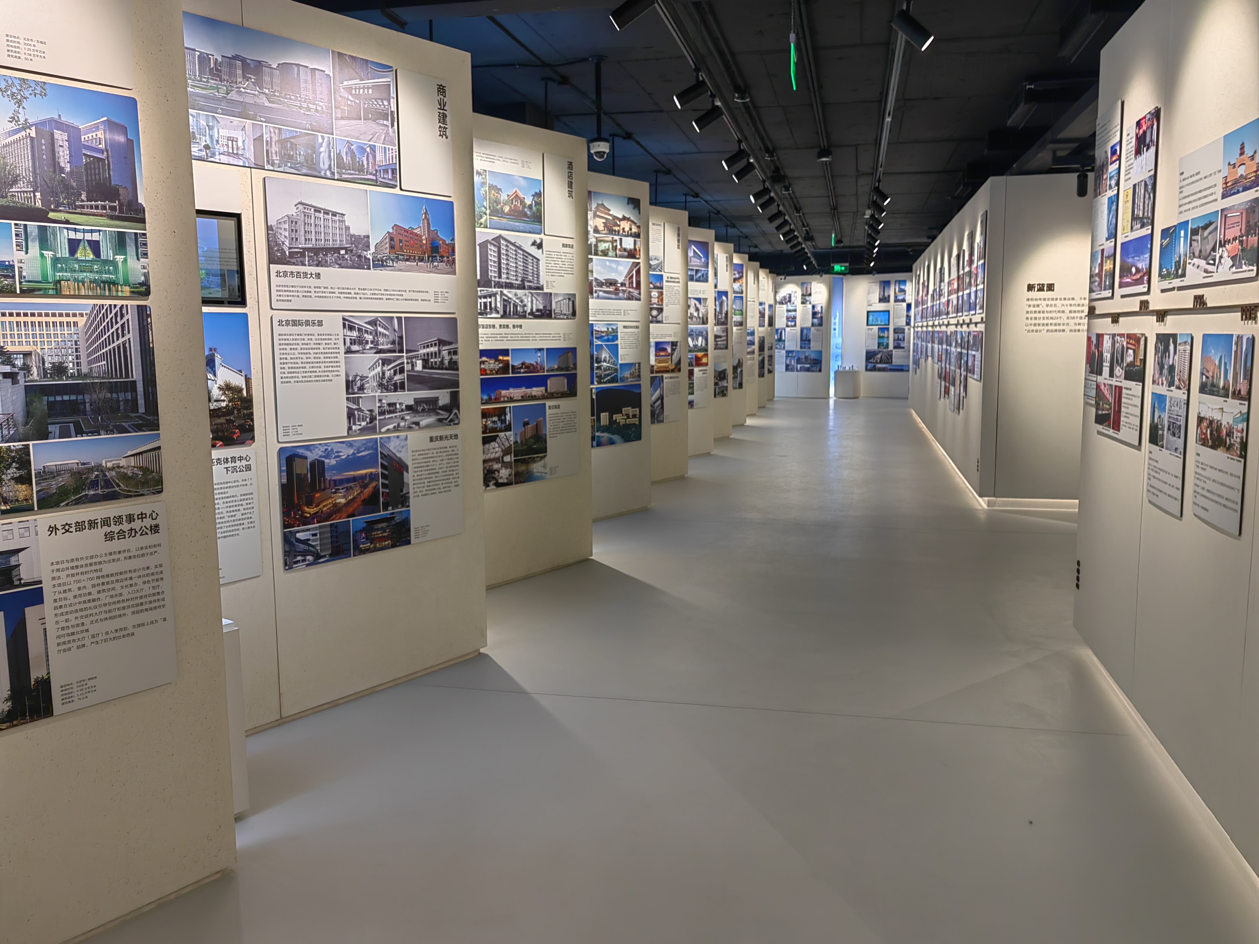 走近北京建院院史馆大厅内,白色的墙壁上展示着或黑白或彩色的历史照片、展柜里陈列了各类奖杯、奖状,屏幕里播放着建筑师们潜心创作的身影……一条时间之轴和一条作品之轴并行讲述北京建院为北京“都与城”建设所作出的重要贡献。70多年来,北京建院的建筑师先后设计了天安门观礼台、人民大会堂、中国革命和中国历史博物馆、全国人大机关办公楼项目。自1980年代至21世纪初,北京建院还一直承担天安门城楼避雷检测的设计研究。